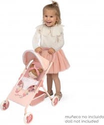 Klapvognen tilbyder sikker fastspænding af dukken med en trepunktssele, praktisk opbevaringsplads til småting og en holdbar materialekombination af metal/plast/tekstil for lang levetid. Leveres i en gaveæske i kollektionens farver – perfekt som gave.