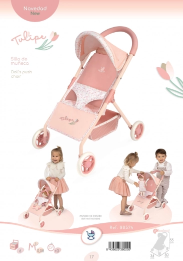 Elegant sportsvogn til dukker fra Tulipe-kollektionen imponerer med sit spanske design, præcise håndværk og nemme håndtering. Den lette konstruktion med trepunktssele, praktisk opbevaringskurv og en håndtagshøjde på 55 cm er ideel til mindre børn. Det stilfulde blomsterprint i varme pastelfarver fuldender enhver leg.