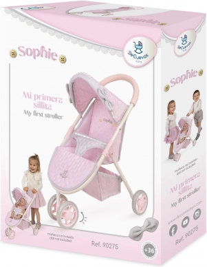 Let og stabil sportsdukkevogn fra kollektionen Sophie imponerer med et blidt design i lyserød og nem manøvredygtighed. Den tilbyder et drejeligt forreste dobbelt-hjul for jævn kørsel, en trefunktionssele for sikker fastgørelse af dukken og en praktisk opbevaringskurv til småting. Ideel til dukker op til 45–46 cm og til børn fra 3 år.