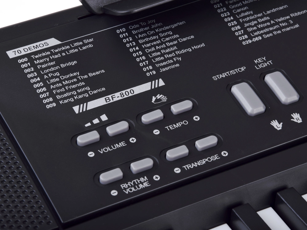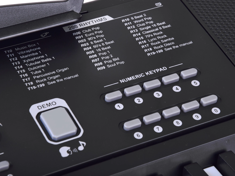 Vælg mellem 200 lyde (klaverer, orgler, strygere, blæsere og moderne synthesizere) og 200 akkompagnementsstile fra pop og rock til jazz og disco. Der er 70 demosange til inspiration og læring, Record/Play til at optage dine egne idéer samt Numeric Pad til hurtig numerisk indtastning.