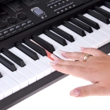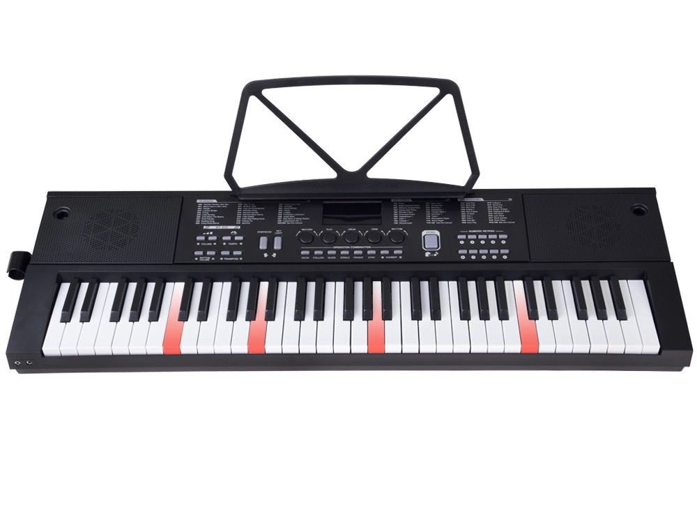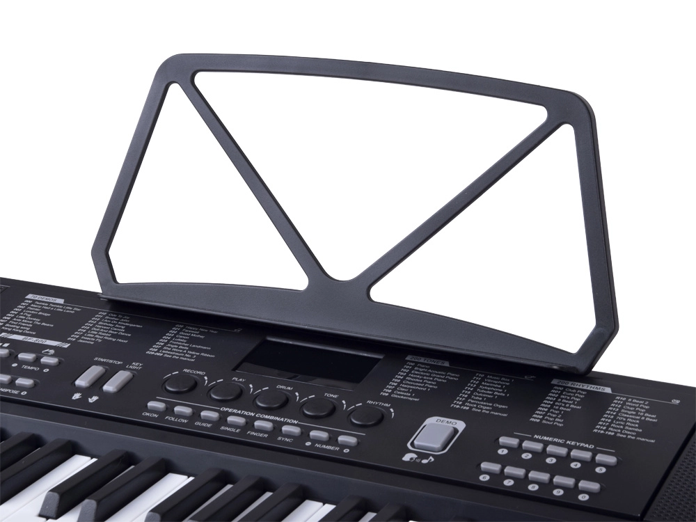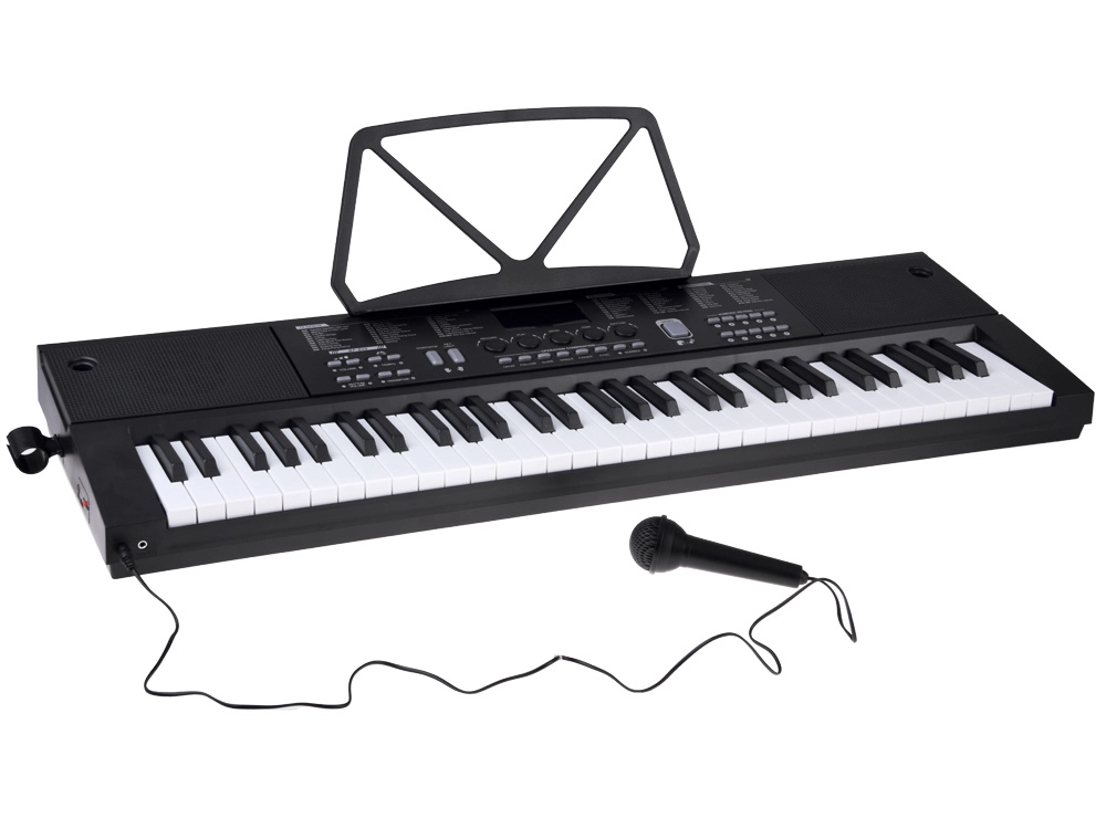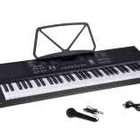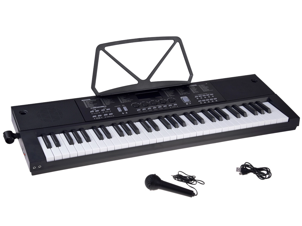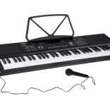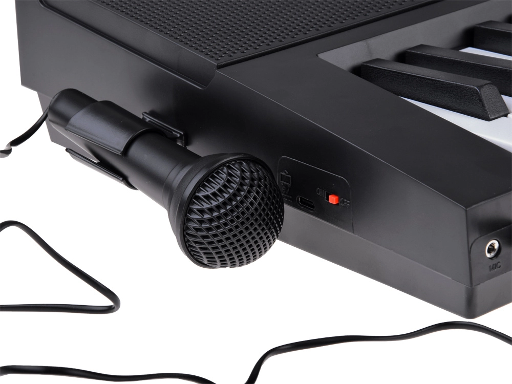 Praktisk tilslutning omfatter USB og mikrofonindgang. I pakken følger mikrofon, nodestativ og USB-kabel med. Takket være de kompakte mål, indbyggede højttalere og en sideplaceret tænd/sluk-knap er instrumentet altid klar til at spille.