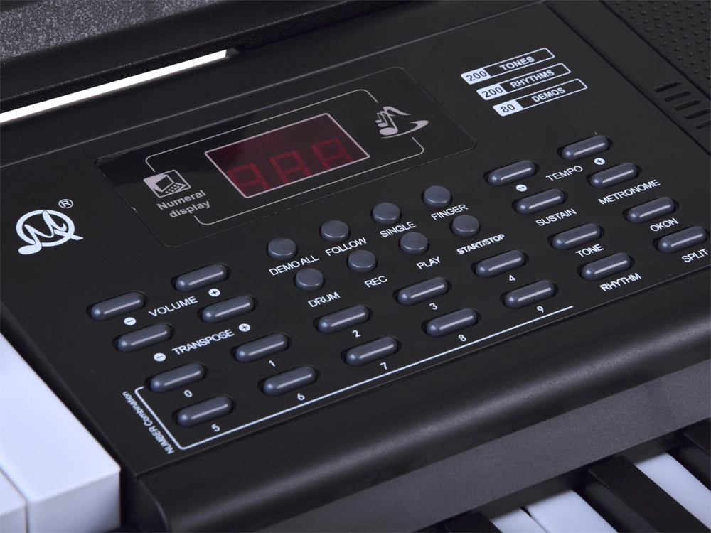 Til inspiration får du 200 toner fra klaverer og orgler til strygere og blæsere, 200 akkompagnerende rytmer (pop, rock, jazz, disco) og 80 demo-sange. Praktiske funktioner som metronom, transpose, sustain, REC/PLAY og læringstilstanden FOLLOW støtter både læring og underholdning.