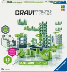 Udvidelsessættet GraviTrax Skytrax løfter dine kuglebaner bogstaveligt talt til nye højder. Særlige forbindelser og konstruktionsdele gør det muligt at bygge i flere niveauer og føre kuglerne over spillebasen ved hjælp af smart designede broer. Dermed skaber du baner fulde af fald, acceleration og glidende passager mellem niveauerne.