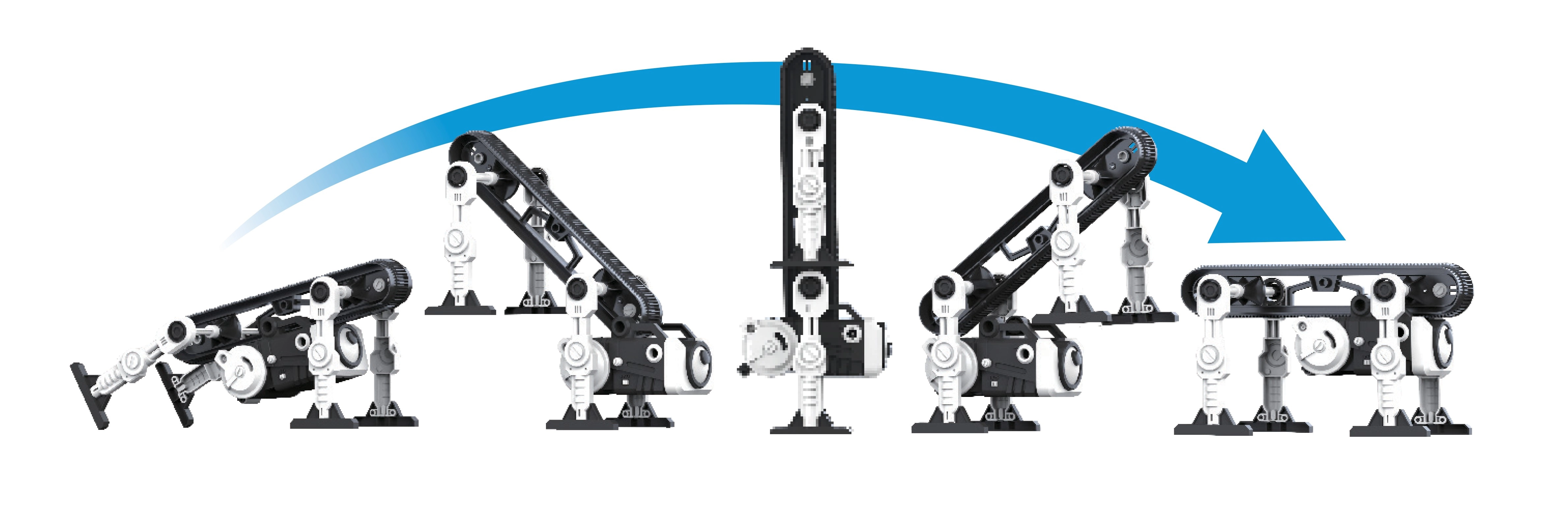 Går op ad trapper, overvinder små forhindringer, automatisk opretning ved fald
