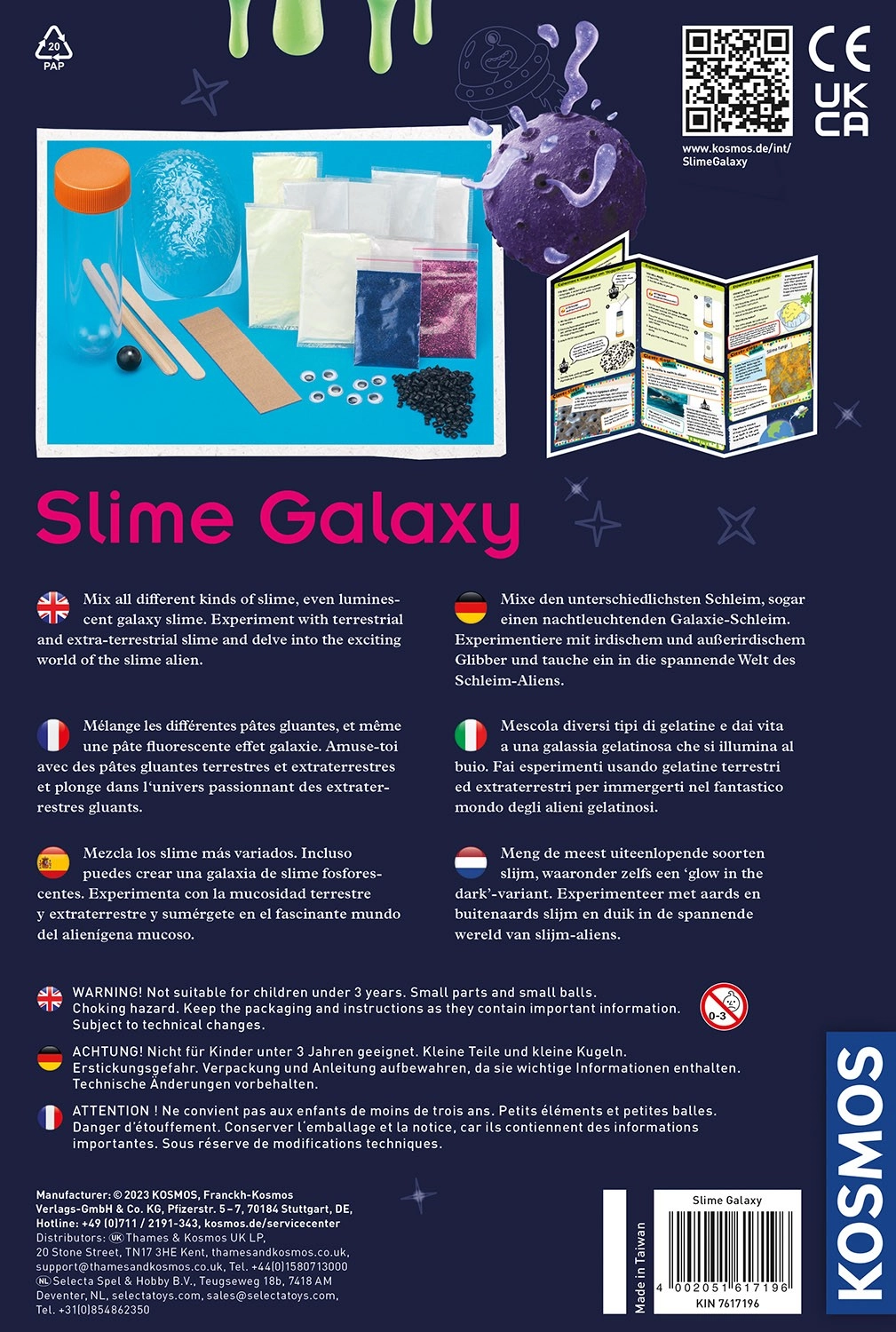 Kosmos slim-sæt er et ideelt valg for både børn og legesyge voksne. Lav din egen farverige, elastiske og glansfulde slim med forskellige effekter og teksturer. Takket være klare instruktioner og vedlagt dansk oversættelse kan du nyde trin-for-trin-kreationer uden bekymringer.