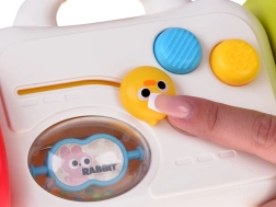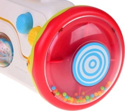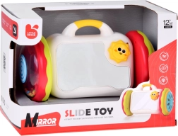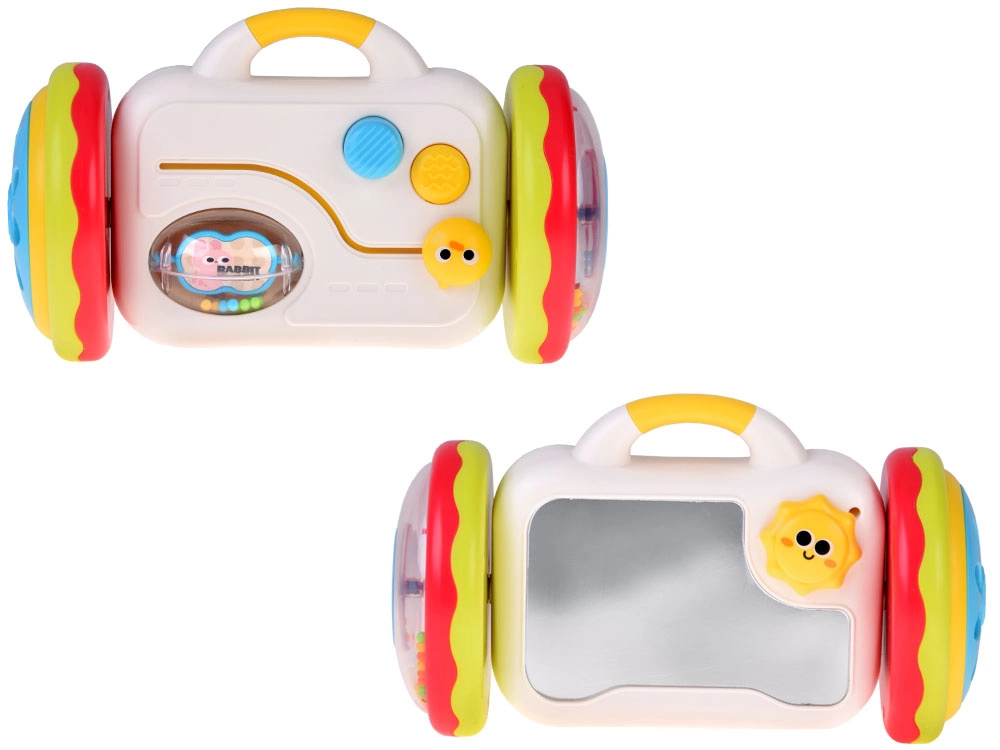 Det interaktive legetøj på hjul kombinerer leg og læring i ét. Barnet fascineres af livlige farver, forskellige teksturer, knapper og skydeelementer, det gennemsigtige vindue med perler samt spejlet til sikker selverkendelse. Håndtaget gør det nemt at bære, og legetøjet er en fantastisk ledsager både hjemme og på farten.