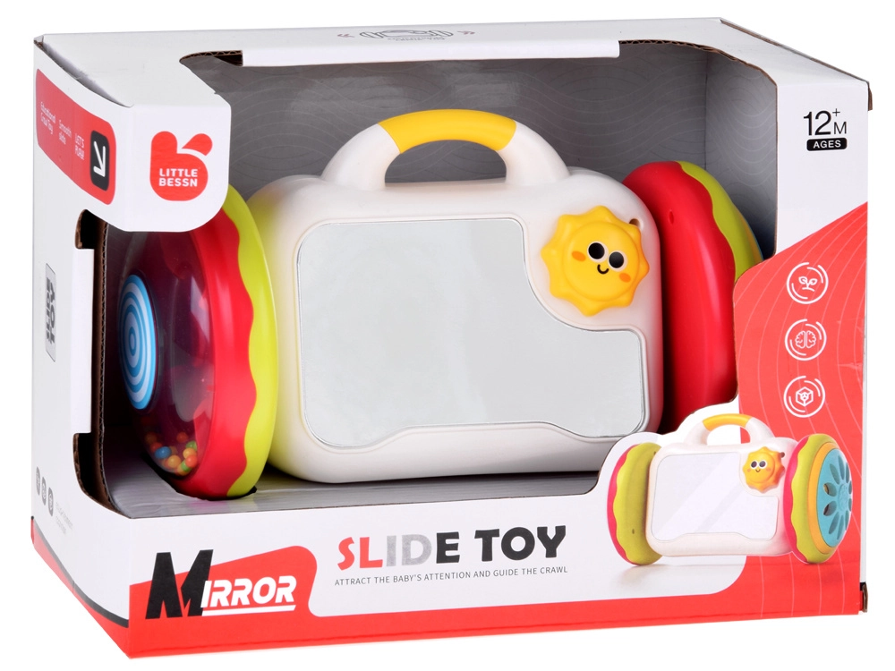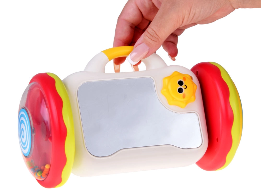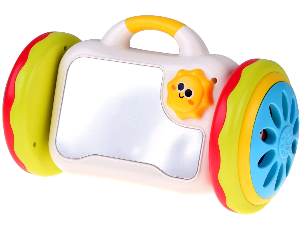 Det sikre spejl i midten af legetøjet indbyder til at opdage sit eget spejlbillede og styrker selvopfattelsen. Samtidig stimulerer det synet og nysgerrigheden.