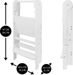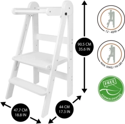 Opdag et praktisk og sikkert hjælpemiddel til hverdagen – sammenklappeligt læringstårn LOFTY. Med justerbar højde i 3 niveauer, maksimal bæreevne på 50 kg og kompakte mål passer det perfekt til både køkken og badeværelse. Sikkert materiale uden formaldehyd og nem adgang takket være det lave trin understøtter barnets selvstændighed i alderen 18–48 måneder.