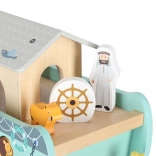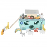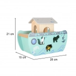 Opdag en trælegetøjsklassiker, der forener form-sorter, fri leg og historiefortælling. Arken med aftagelig rampe og tag gemmer på et sæt dyrefigurer og to figurer af Noa og hans hustru – børn kan laste båden, styre med rattet og lægge dyrene i de rigtige åbninger.