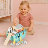 Dyrene indsættes i præcist formede åbninger på bådens side. Børn øver formgenkendelse, tålmodighed og finmotorik på en naturlig og sjov måde.