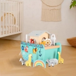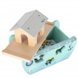 - båd med aftageligt tag, rampe/podie, rat, dekorativ regnbue, Noa og hustru, par: zebraer, giraffer, elefanter, får, løver, ræve