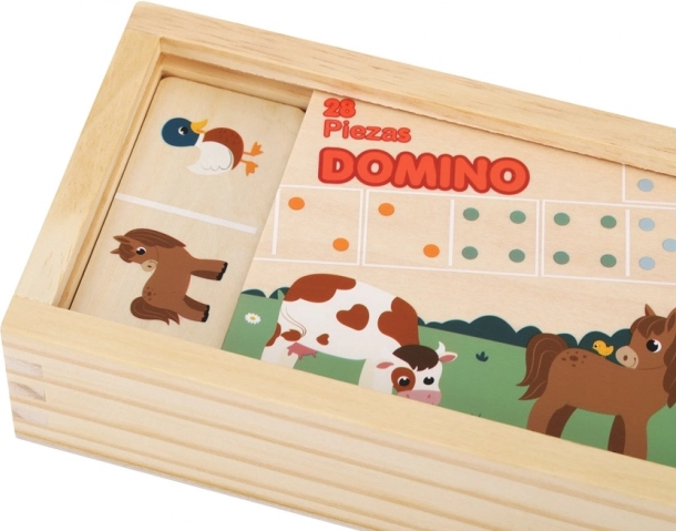 Oplev magien ved det dobbeltsidede trædomino fra gården, som byder på to måder at lege i ét spil. Mindre børn lægger efter glade billeder af dyr, de større kan spille klassisk prikkedomino og træner nænsomt tælling og logik. Kvalitetsnaturtræ, behagelige pastelfarver og en praktisk trææske med låg gør det til et smukt og holdbart legetøj for børn fra 2 år.