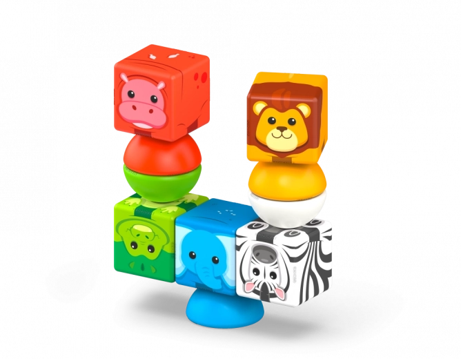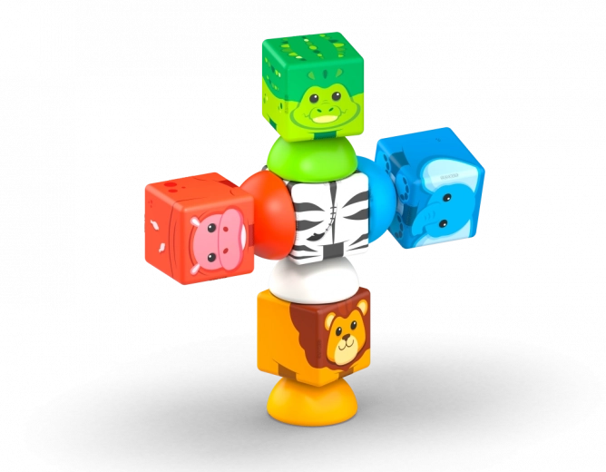 Sættet indeholder 5 magnetiske terninger med safari-dyremotiver og 5 farverige magnetiske halvkugler. Delene er robuste, behagelige at holde om og designet til sikker leg allerede fra 2 år. Byggesættet er fuldt kompatibelt med de øvrige sæt i Magicube-serien, så fantasiens verden kan vokse uendeligt.