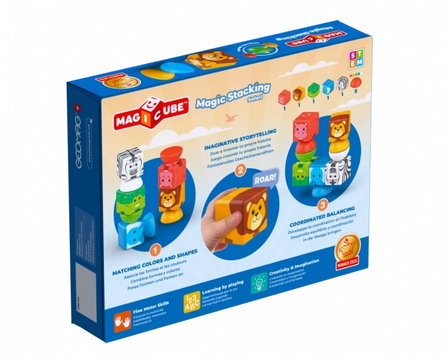 Det magnetiske byggesæt Geomag Magicube Safari giver børn en legende og sikker måde at udforske konstruktionens verden på. Takket være stærke magneter forbindes klodser og halvkugler let fra alle sider, så selv de yngste byggere kan lave dyr, små køretøjer og fantasifulde former. Sejren på legetøjsmessen i Nürnberg i kategorien Baby & Infant 2025 bekræfter kvaliteten og populariteten.