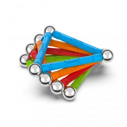 Robuste plaststave og blanke metal-kugler fæstner sikkert takket være magneterne. Konstruktionerne er stabile og lette at bygge om.