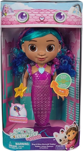 Havfruen Gabby fra filmen Gabbys magiske hus giver børn en kombination af lys, lyd og vandeffekter. Tryk på hjertehalskæden og nyd lyseffekter og 14 autentiske lyde og replikker. Dukkens hale skifter desuden farve i varmt vand, så hvert bad eller vandleg bliver fuld af overraskelser.