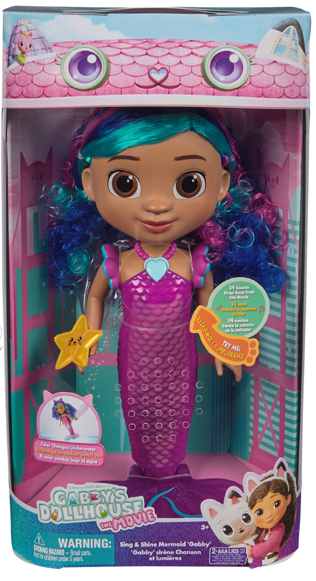 Havfruen Gabby begejstrer børn med stærke farver, legesygt design og interaktive funktioner. Når du trykker på den hjerteformede halskæde, tændes lysene, og op til 14 lydeffekter, sætninger og melodier inspireret af den populære fortælling afspilles. Den farverige hale lyser op og skaber et show ved hver leg.