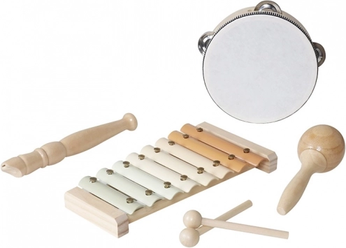 Tamburin, maracas-kugle, fløjte og xylofon med køller giver børn et bredt udvalg af lyde og lege-muligheder.
