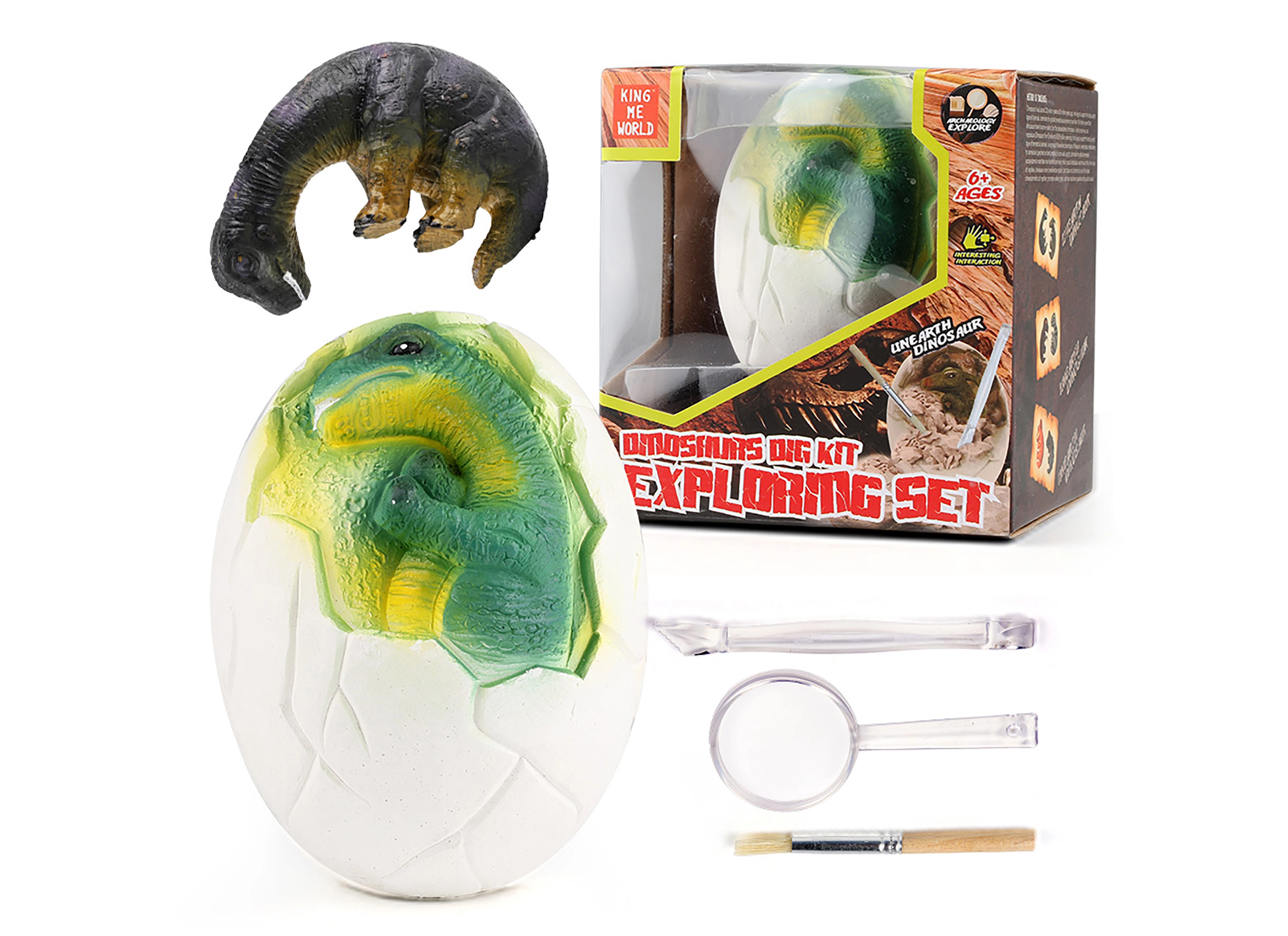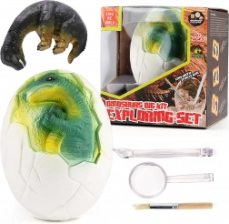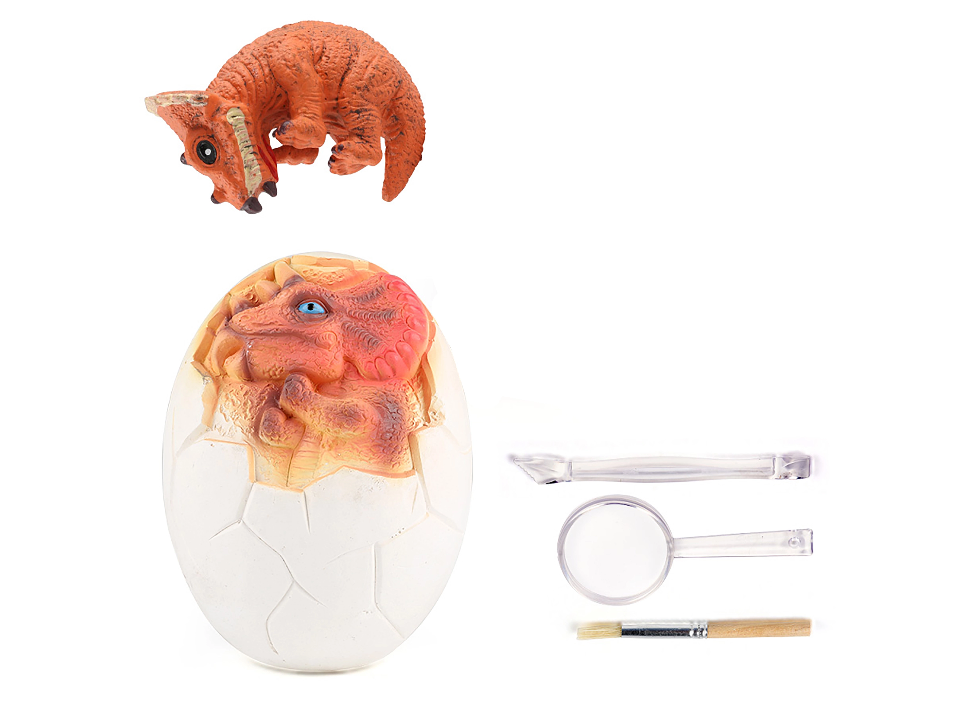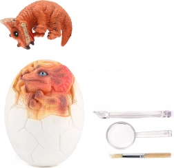 Sættet indeholder alt nødvendigt: mejsel/kniv til at hakke løs, en fin pensel til at fjerne støv og en lup til at undersøge detaljer. Legen styrker tålmodighed, koncentration og naturlig nysgerrighed for dinosaurernes verden. Fås i 3 forskellige varianter af figurer – en overraskelse helt til sidste øjeblik.