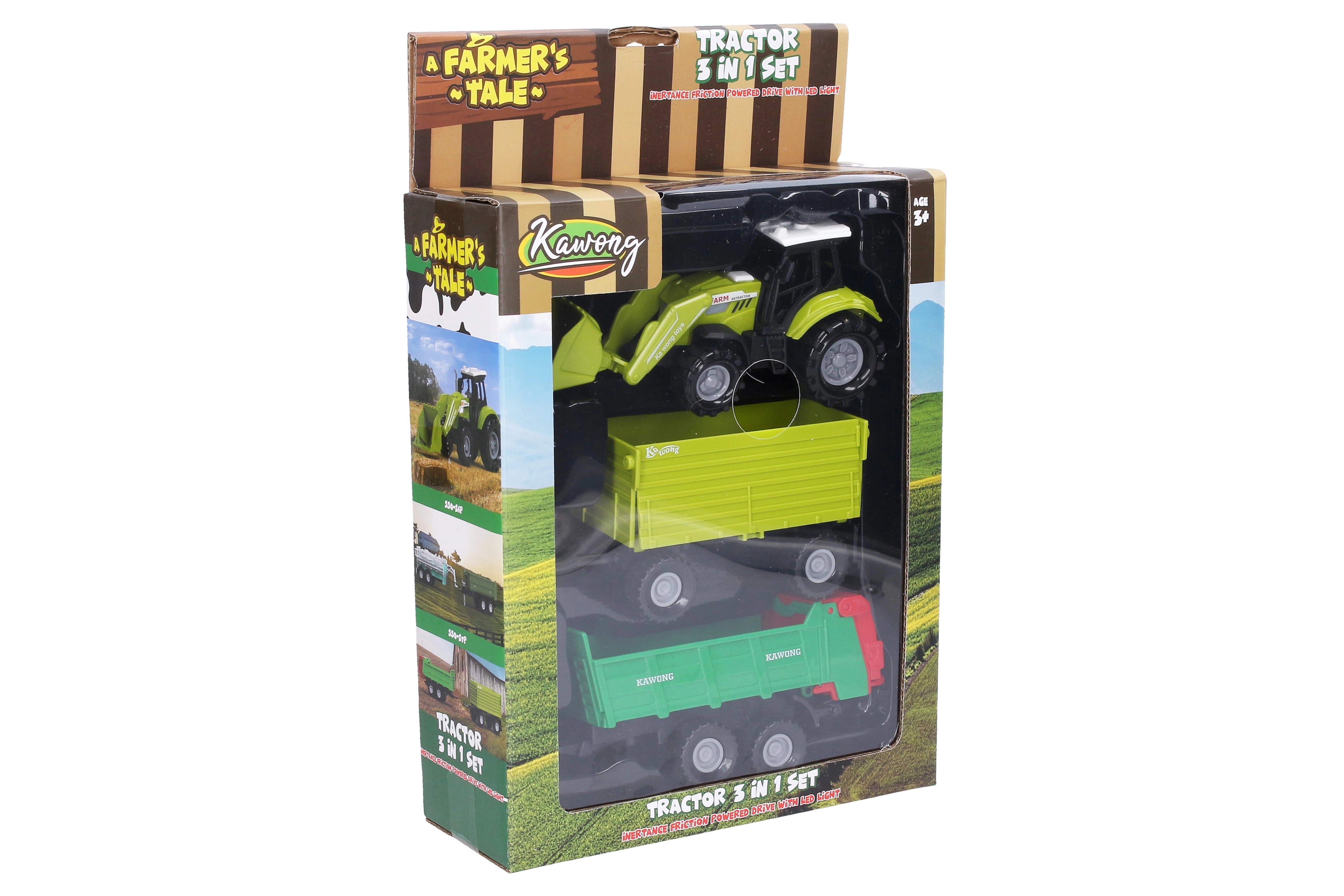 Denne detaljerede friktions-traktor giver børn masser af sjov og realisme. Takket være lys- og lydeffekter og frie hjul er kørslen jævn, og legen føles naturlig. Effekterne aktiveres nemt med knappen på forsiden af traktoren.