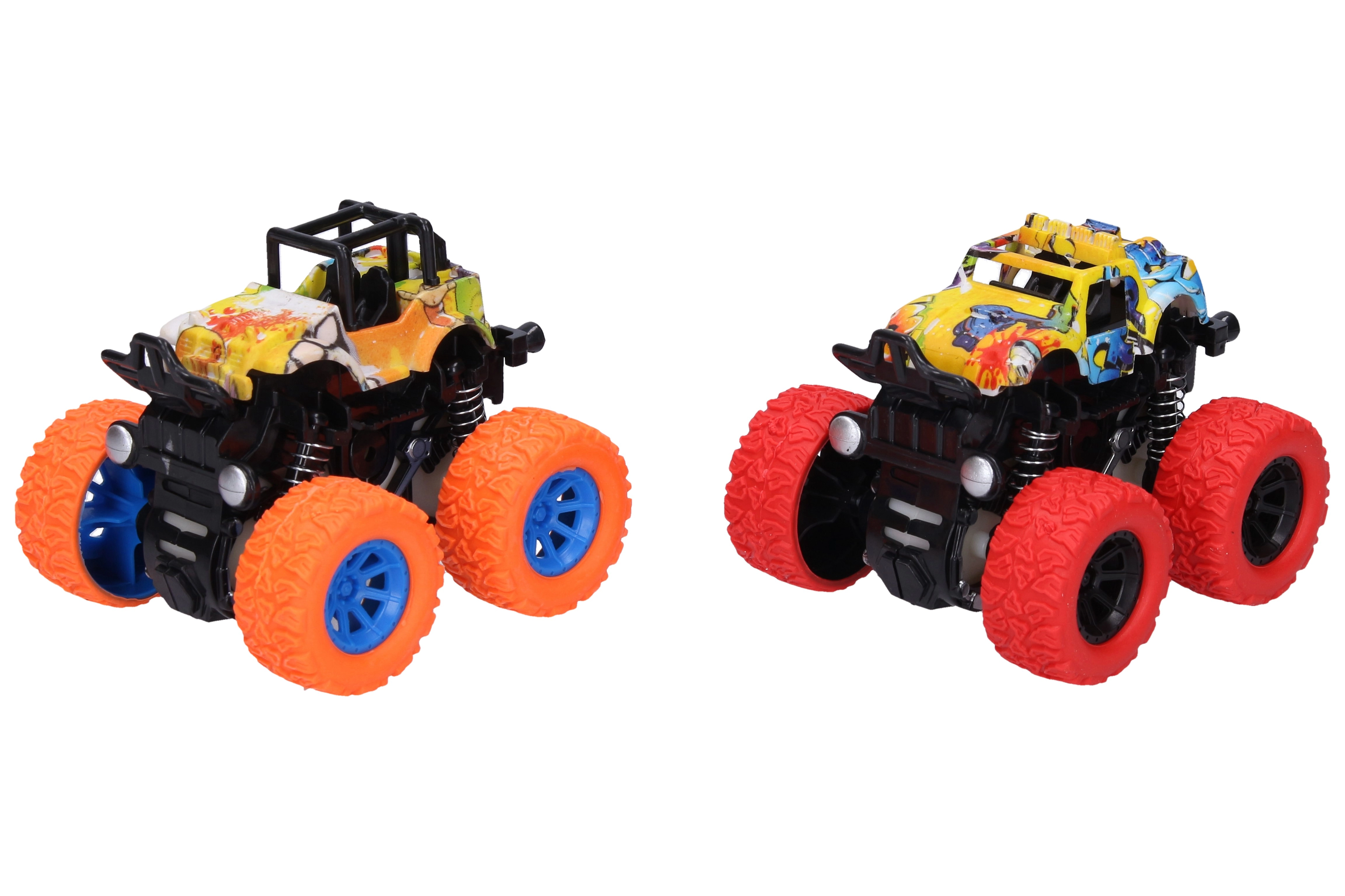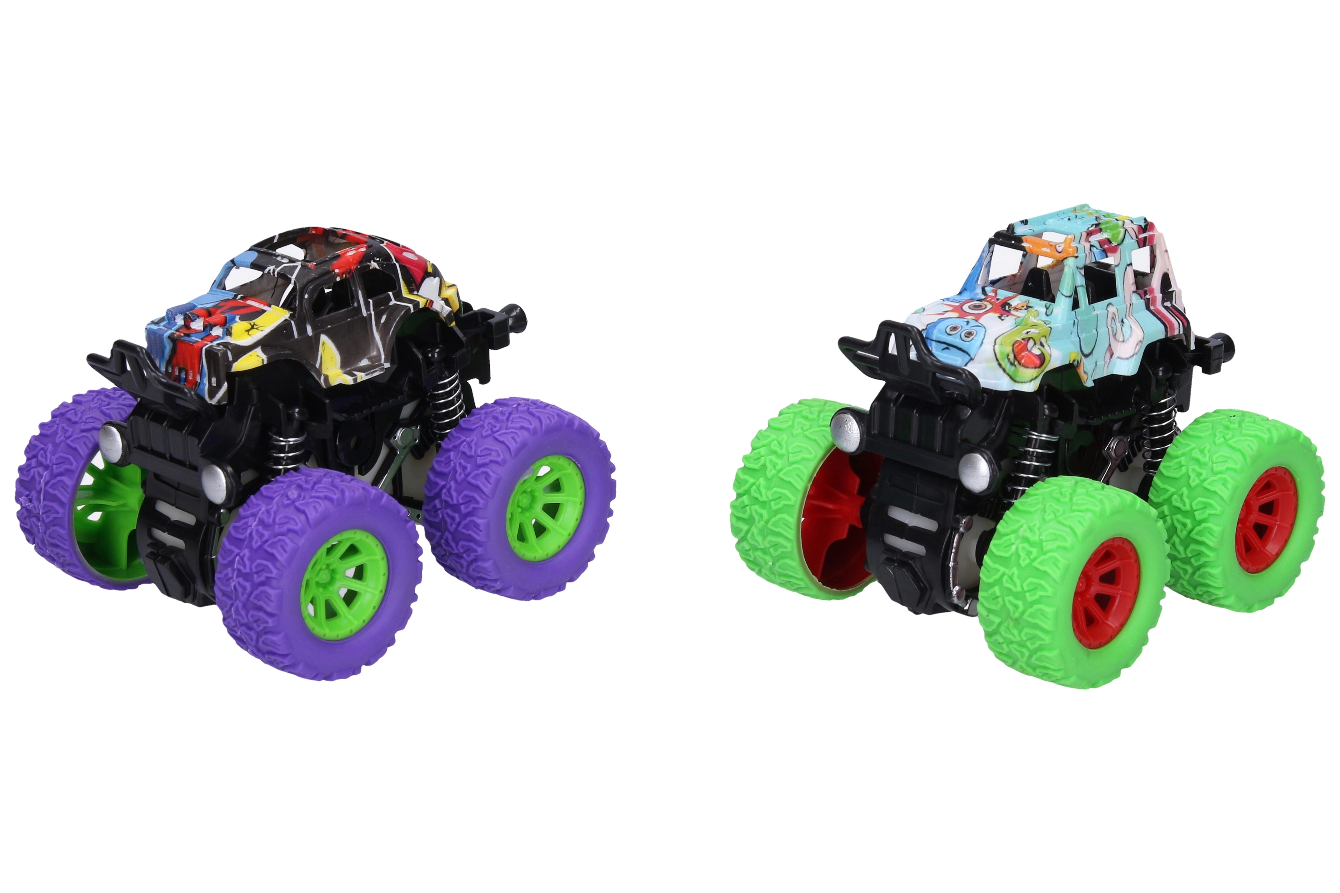 Disse terrængående minibiler på ca. 9 cm med friktionsdrev skal blot trækkes tilbage og slippes – så suser de afsted med høj fart. De stilfulde karrosserier med graffiti-motiver i forskellige farvevarianter fanger blikket og understøtter kreativ leg.