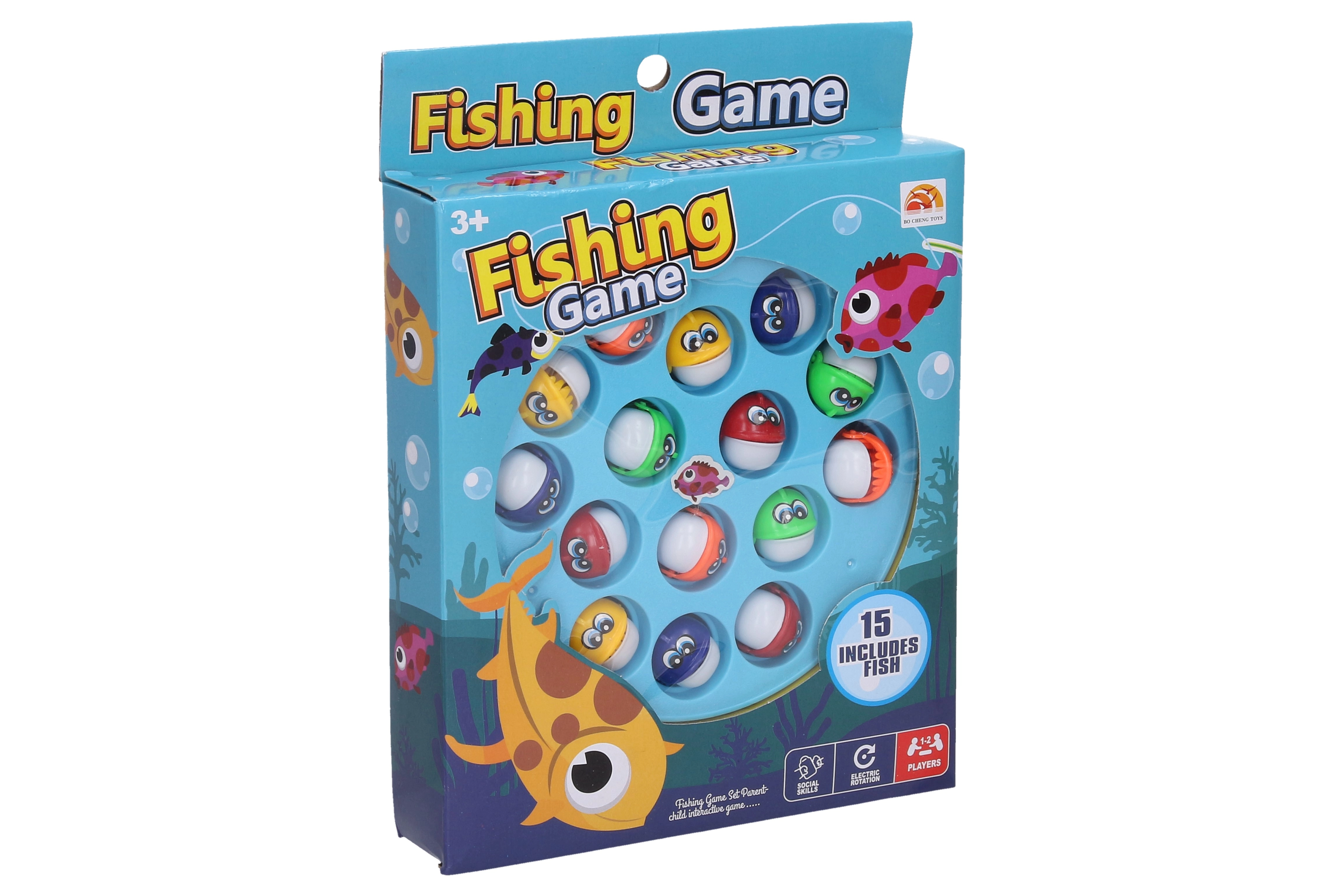 I pakken finder du 15 farverige fisk og 2 fiskestænger, så både én og to spillere kan være med. De kompakte mål 16 × 17,5 × 3 cm gør det nemt at tage med og opbevare. Spillet drives af 2× AA 1,5 V batterier (medfølger ikke) og leveres i flere designvarianter.