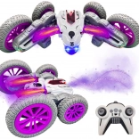 Leder du efter et adrenalinsus? Denne fjernstyrede stuntbil kombinerer hastighed, smidighed og visuelle effekter. Den kører frem og tilbage, kan vende på mave og ryg, og med 360° rotation udfører den hæsblæsende tricks. Effekten af vanddamp med LED forvandler hver tur til et lysshow.