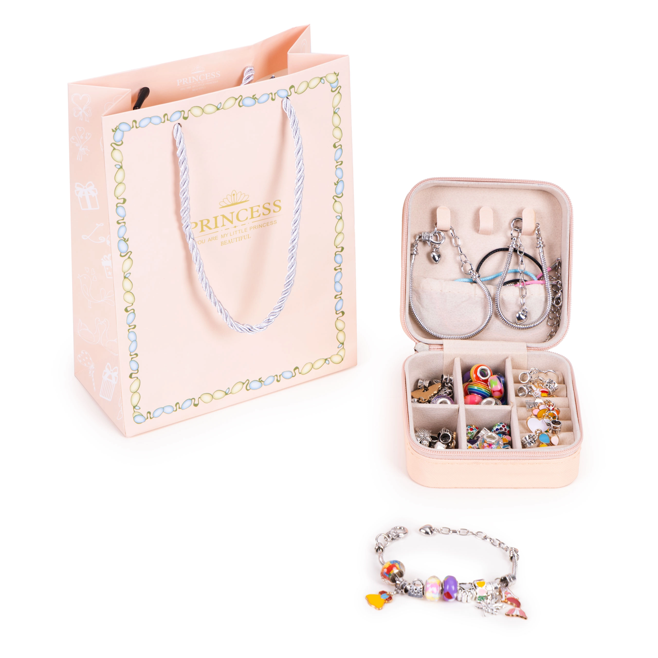Smykkerne kan opbevares sikkert i den bløde organizer med rum, som holder styr på smådelene og beskytter dem. Hele sættet kan desuden nemt pakkes i den søde gavepose “Princess” – perfekt til gaver og transport. Det fælles kreaarbejde styrker samarbejde, tålmodighed og kreativitet.