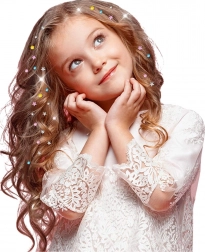 Dette sjove og sikre sæt udvikler kreativitet og finmotorik. Børn kan på få sekunder forvandle deres frisure, accessories eller yndlingsgenstande (håndtaske, telefon, briller) til unikke, glitrende sager. Applikatoren er designet til hurtig og nem påføring uden rod.