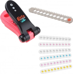 Kreativt sæt til små pyntedukker gør det hurtigt og nemt at dekorere hår, negle, hud og genstande med funklende sten. Takket være den praktiske maskine er det nok at indsætte en strimmel med krystaller, placere den på det valgte sted og med ét enkelt tryk skabe en øjeblikkelig glanseffekt. Pakken indeholder 80 krystaller i forskellige former til uendelige kombinationer.