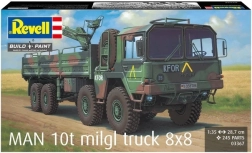 Plastmodel af den militære lastbilplatform MAN 10T MILGL 8x8 i skala 1/35 leverer autentiske detaljer af 8x8-undervognen, kabinen og ladet. Modellen er beregnet til limning og maling, så du kan tilpasse køretøjet efter dine egne ønsker.