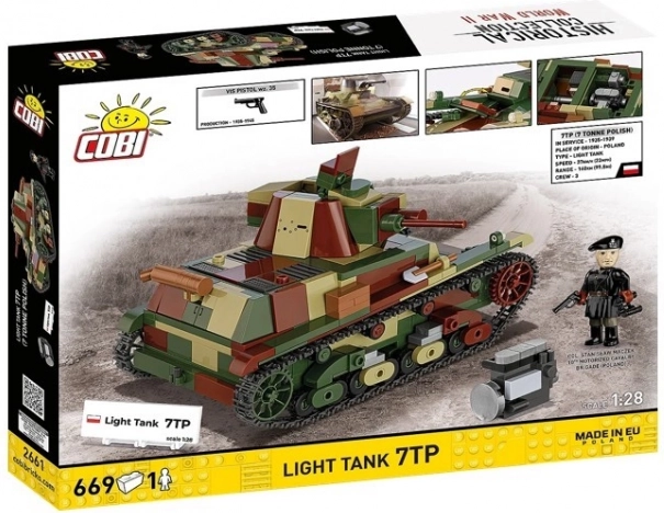 Opdag en detaljeret model af den polske lette kampvogn 7TP, som var blandt de mest værdifulde pansrede køretøjer i kampagnen i 1939. Byggesættet kombinerer historisk nøjagtighed med robuste klodser og kvalitetsprint, så den skiller sig ud både til leg og i montre. Skala 1:28 sikrer imponerende detaljer og samtidig kompakte mål, der passer til hylden eller dioramaer.