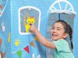 Leg i huset fremmer børns kreativitet og fantasi, hvad enten det er at fortælle eventyr til tøjdyr, læse bøger eller tegne. Med sin lette konstruktion er det let at transportere.