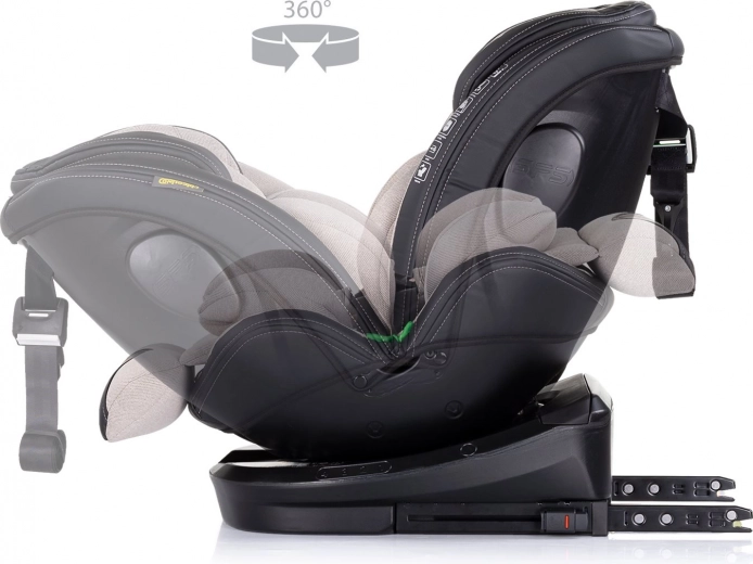 CHIPOLINO Hypnotic i-Size vokser med barnet fra 40 til 150 cm. Nem installation via ISOFIX og Top Tether giver solid forankring, mens den roterende base 360° gør det markant lettere at sætte barnet i og tage det ud – både bagud- og fremadvendt. Sikkerheden varetages af SPS – beskyttelse ved sidekollision, en 5-punkts sikkerhedssele med polstring og en konstruktion, der opfylder i-Size (R129).