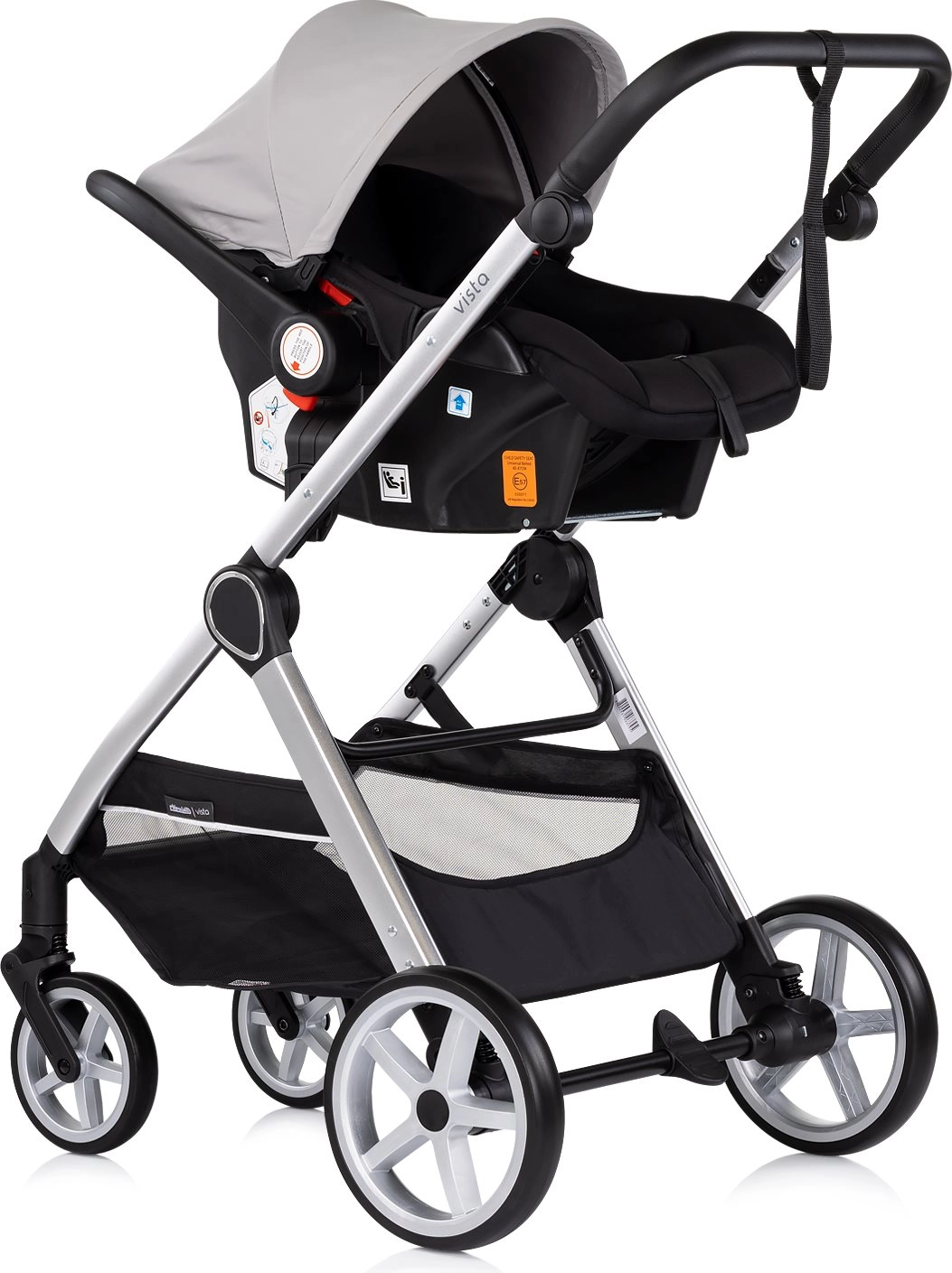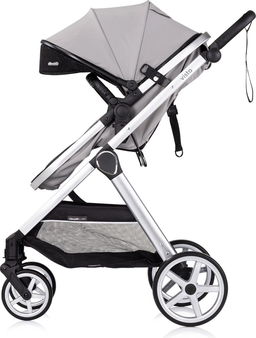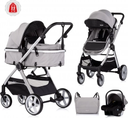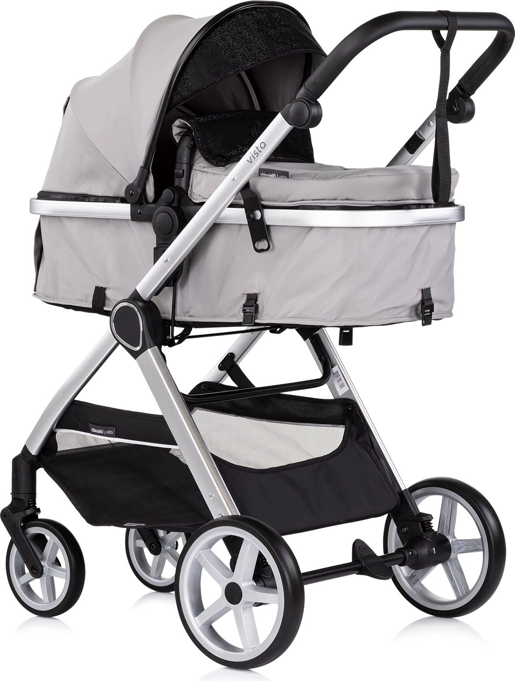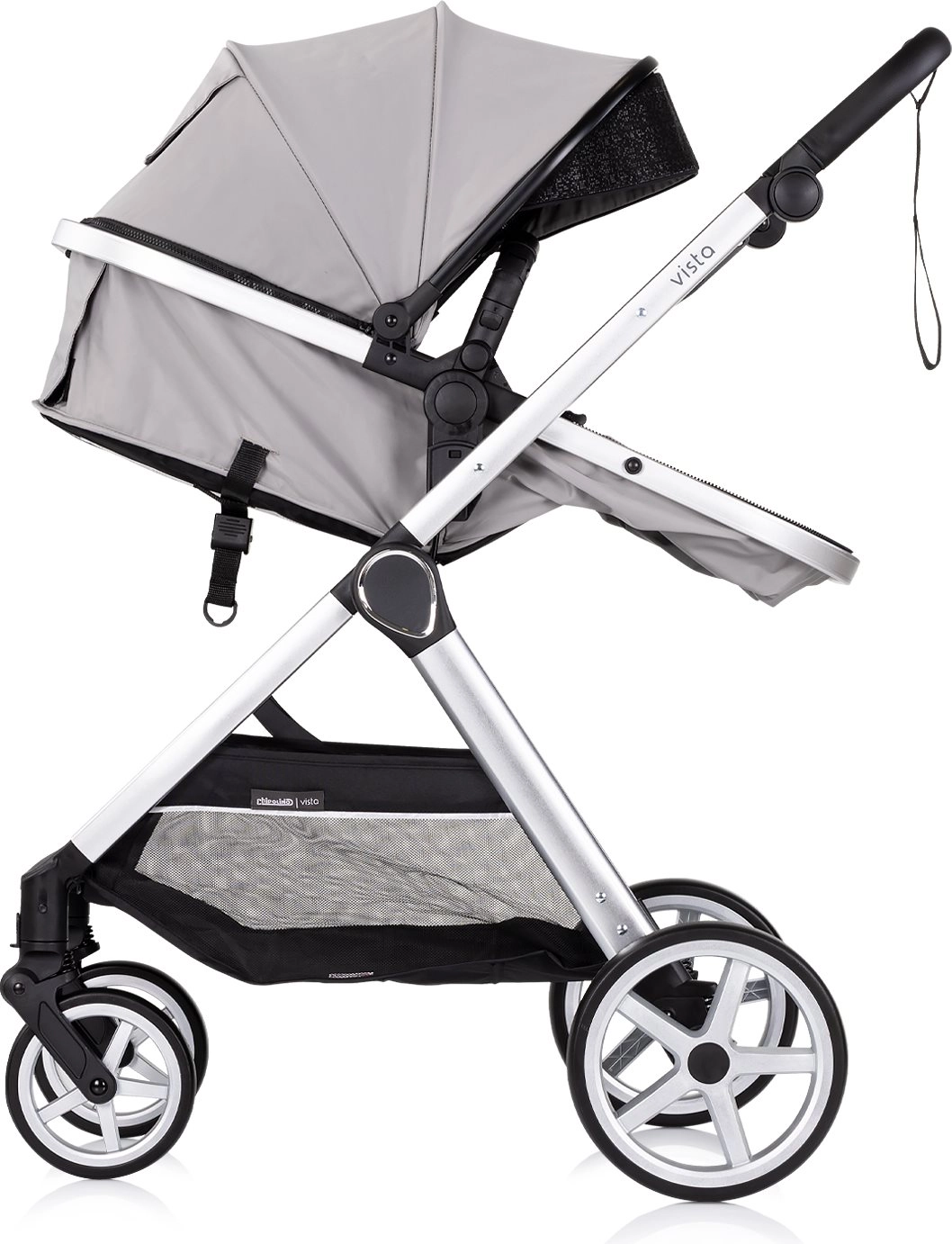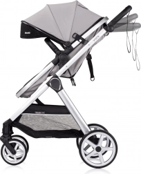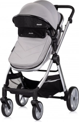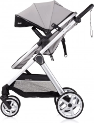 CHIPOLINO Vista Cloud Grey er en praktisk 2-i-1 barnevogn, som kombinerer liggedel og sportssæde i én løsning. Takket være den smarte konstruktion omstilles sædeenheden nemt til liggedel for nyfødte og tilbage igen, med mulighed for montering med og mod kørselsretningen. Den lette aluminiumsramme med anodiseret look og affjedring på alle hjul sikrer en komfortabel og stabil kørsel både i byen og i parken.
