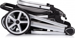 For barnets komfort findes justerbar ryglæn (3 positioner), 5-punktssele med polstring og aftagelig sikkerhedsbøjle i økolæder. Forældre vil sætte pris på det højdejusterbare håndtag med sikkerhedsstrop til håndleddet, den store opbevaringskurv samt kaleche med vindue og solskærm. Baghjulene har forbundet bremse, og låsning giver ekstra stabilitet til både sædeenhed og liggedel. Vognen opfylder de europæiske standarder EN1888-1 og EN1888-2.