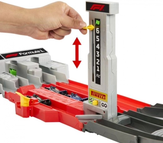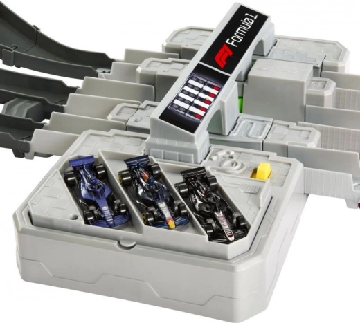 Træd ind i en verden af højhastighedsdueller med Hot Wheels-banen inspireret af bybaner fra Formel 1. Børn sender op til tre metal-F1-modeller gennem den kraftige tre-spors booster, kører gennem hældende sving og elevation, og vinderen afgøres ved passagen gennem målstregen med omgangstæller.