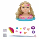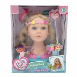 Dette styrehoved er et fantastisk legetøj for små frisører. Med lyseffekter og en praktisk kronformet knap på soklen bliver hårstylingen endnu sjovere. Størrelsen på 24 cm er ideel til at øve fletninger, knolde og kreative frisurer.