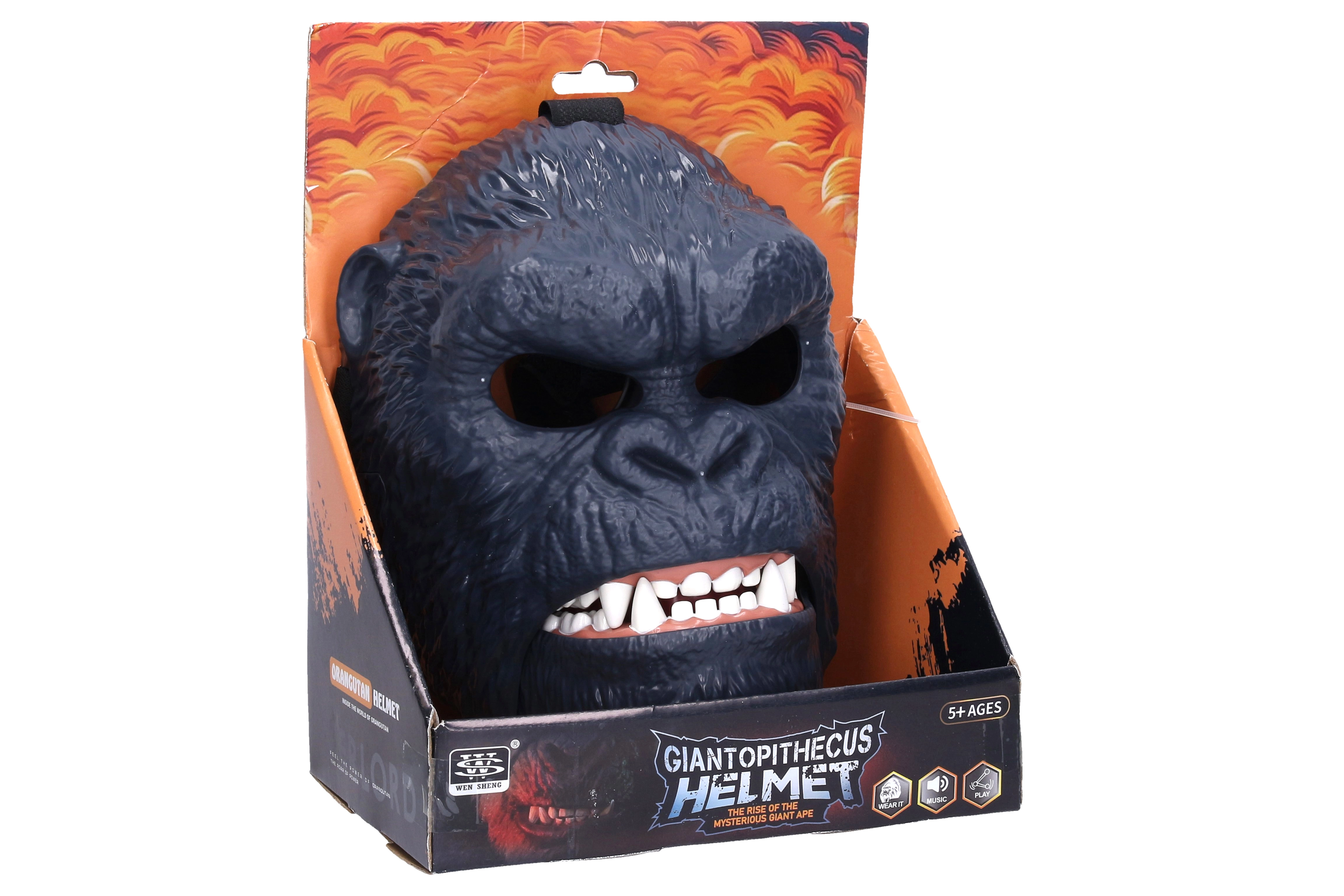 Bliv junglens konge med en realistisk gorillamaske med lyd! Når du bevæger hovedet, åbner kæben sig, og gorillens brøl aktiveres automatisk. Pakken indeholder 3× AG13-batterier og tjekkisk emballage. Ideel til karneval, Halloween og børneleg.