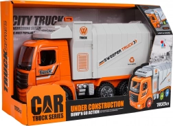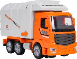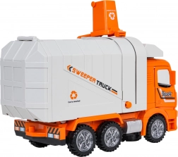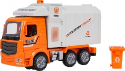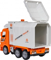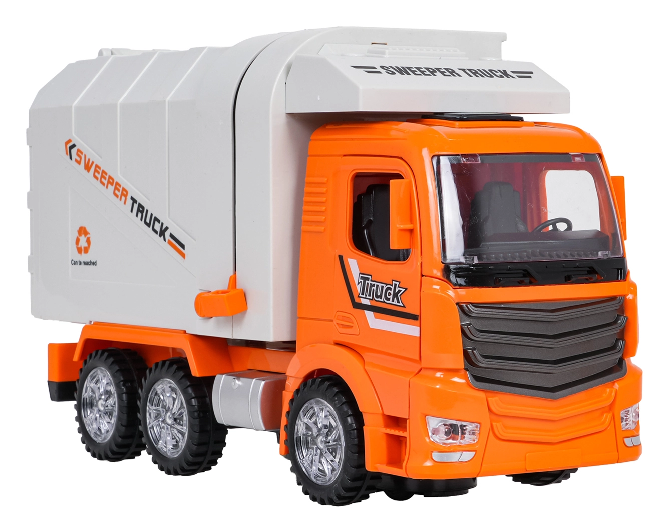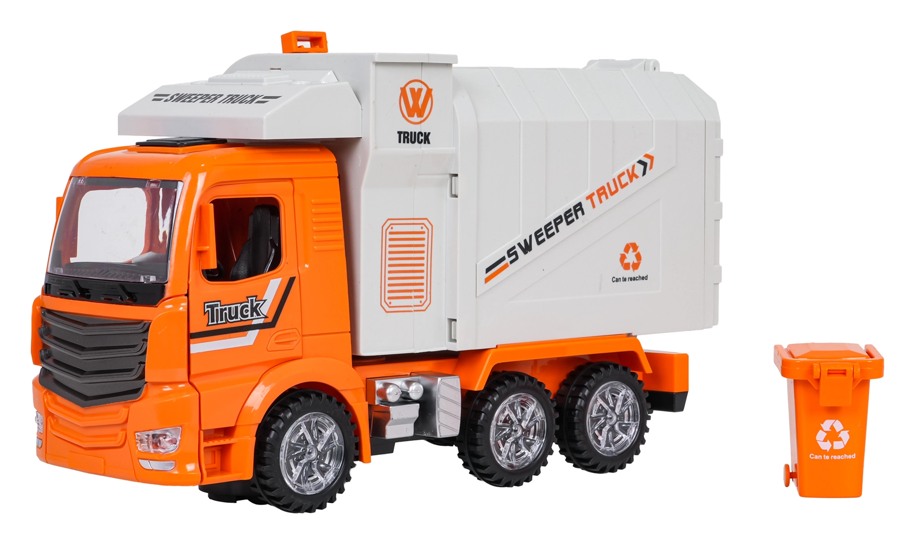 Denne orange skraldebil er lavet af kvalitetsplast med fokus på detaljer. Takket være lys- og lydeffekter giver den børn en autentisk oplevelse af bytrafik. Styringen omfatter kørsel i alle retninger, åbningsbare døre samt automatisk løft og sænkning af containeren, hvilket stimulerer kreativ og realistisk leg.