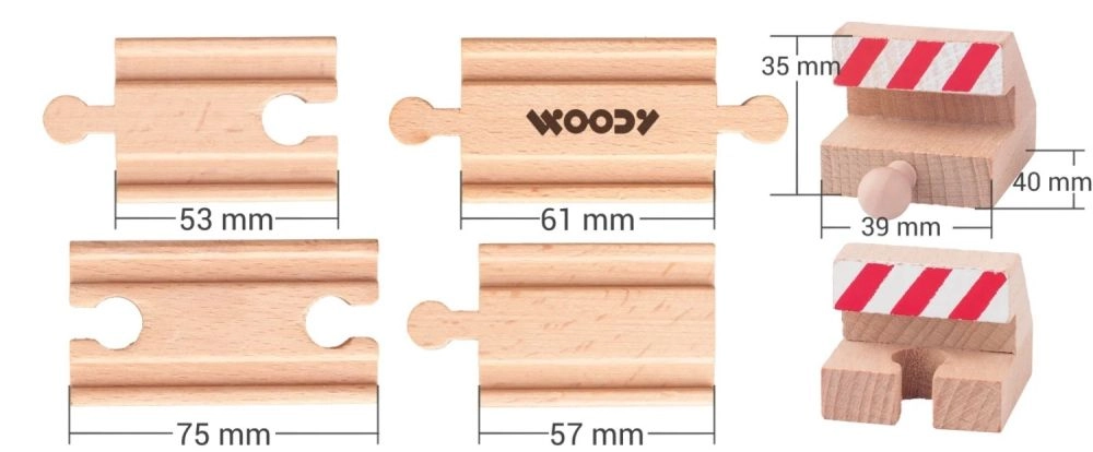 Dette praktiske sæt kombinerer lige skinnedele og endebuffere, som forhindrer togene i at køre af sporet. Delene klikkes nemt sammen med din nuværende trætogbane og udvider straks legemulighederne. Takket være kompatibiliteten med populære mærker som BRIO, IKEA, ELC, Eichhorn, Woodyland, Tesco, Carousel og Bigjigs Toys kan du bygge længere, sikrere og sjovere spor.