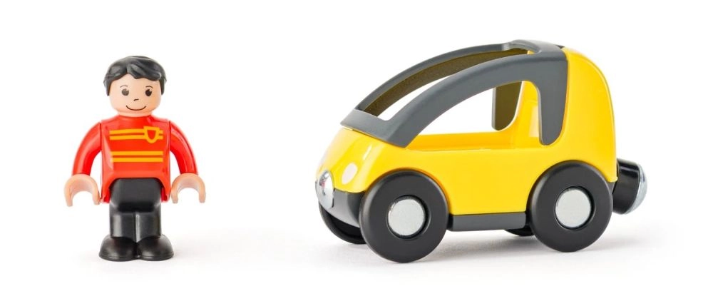 Inkluderer kompakte biler med frihjul og figurer, der er tilpasset til at sidde i kabinen – perfekte til nem håndtering med børnehænder.