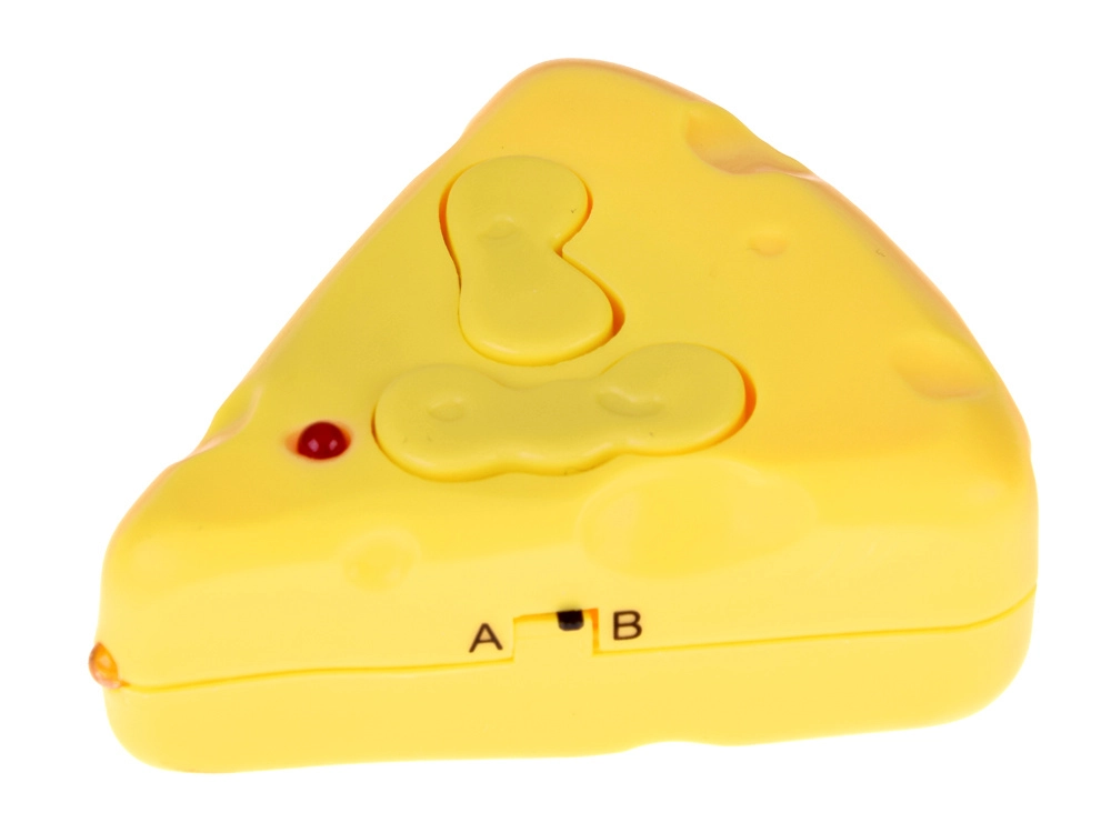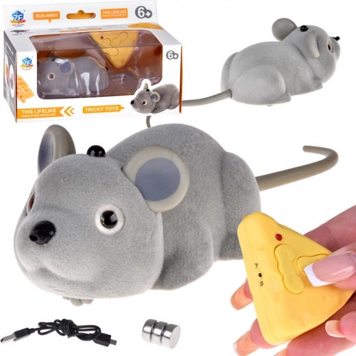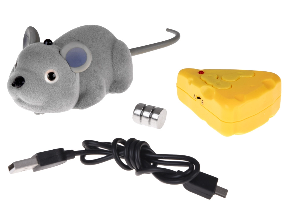 Der medfølger en ostformet fjernbetjening med intuitiv styring – kørsel frem/tilbage, drejning til højre/venstre og et særligt hjul til glidende buer. I pakken finder du også et USB-kabel til opladning samt batterier til øjeblikkelig sjov. Ideel som interaktivt kattelegetøj og en sjov gave til venner.
