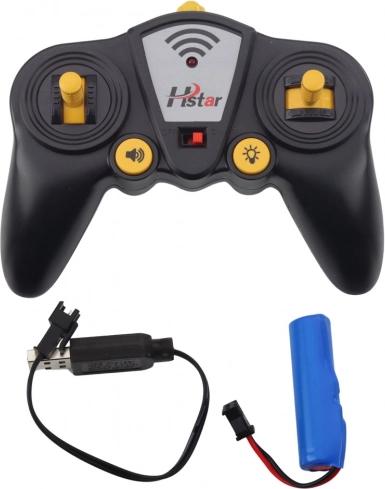 Inkluderer 3,7 V Li-batteri og USB-kabel. Fjernbetjeningen med to styrepinde giver kontrol over lys og lyde for en endnu større oplevelse.