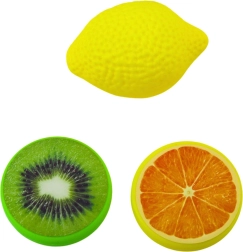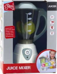 Blenderen er lavet af sikkert og holdbart plast, har kompakte mål og er let at betjene. I pakken finder du også frugttilbehør (en skive kiwi, appelsin og citron), så børn kan lave deres egne opskrifter og udvikle fantasien.