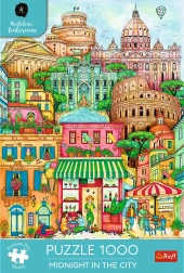 Nyd kvalitet og afslappende lægning med TREFL Premium Plus puslespil – motivet Midnat i Rom bringer en romantisk atmosfære fra den historiske by om natten. Takket være den ekstra tykkelse og styrke i kartonen holder de samlede sektioner godt sammen, så du nemt kan flytte færdige dele.