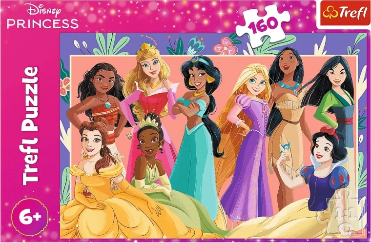 Nyd at lægge puslespil med de elskede heltinder fra DISNEY! Dette farverige puslespil med motiv af Prinsesser indeholder 160 brikker og danner efter samling et billede i størrelsen 41 × 27,8 cm. Ideelt for både børn og voksne, der elsker eventyr og kvalitetsunderholdning.