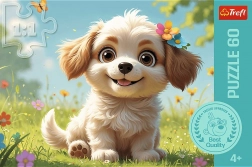 Sødt børnepuslespil med et kærligt motiv af en hvalp, der vil glæde små byggere. Indeholder 60 brikker, og det færdige motiv måler ca. 33 × 22 cm – ideelt til træning af tålmodighed, koncentration og finmotorik.