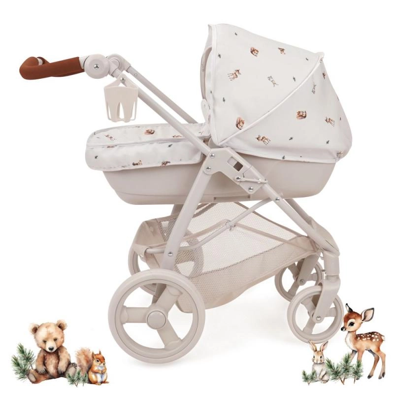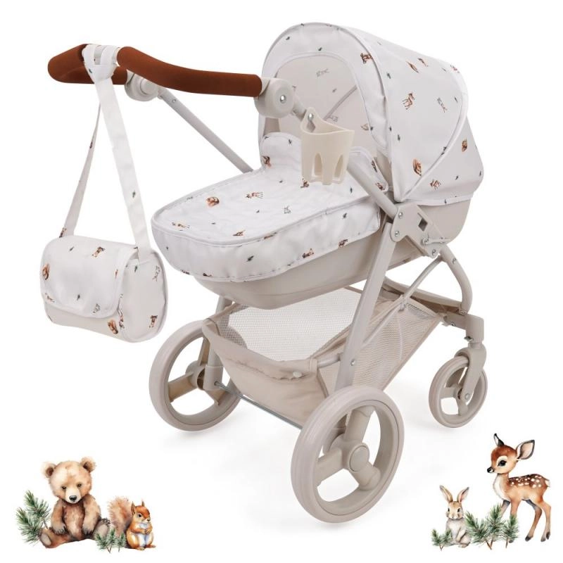 Bella 2-i-1 dukkeklapvogn med Woodland-motiv kombinerer elegance og funktionalitet. Du skifter let mellem dyb lift og sportsæde, så den tilpasser sig enhver leg. Med den justerbare styrhøjde passer den komfortabelt til børn i forskellig højde, og det drejelige forhjul giver en glidende kørsel selv i sving.