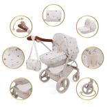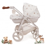 Den stilfulde 2-i-1 Bella dukkeklapvogn i Woodland-design vil glæde små omsorgspersoner med sin gennemtænkte udformning. Den kombinerer en dyb barnevogn og en sportsvogn, har en justerbar styrhøjde, et drejeligt forhjul for nem manøvrering, en stor opbevaringskurv og en praktisk tilbehørstaske. Takket være den aftagelige lift, kaleche og fodpose er den ideel til leg både inde og ude.